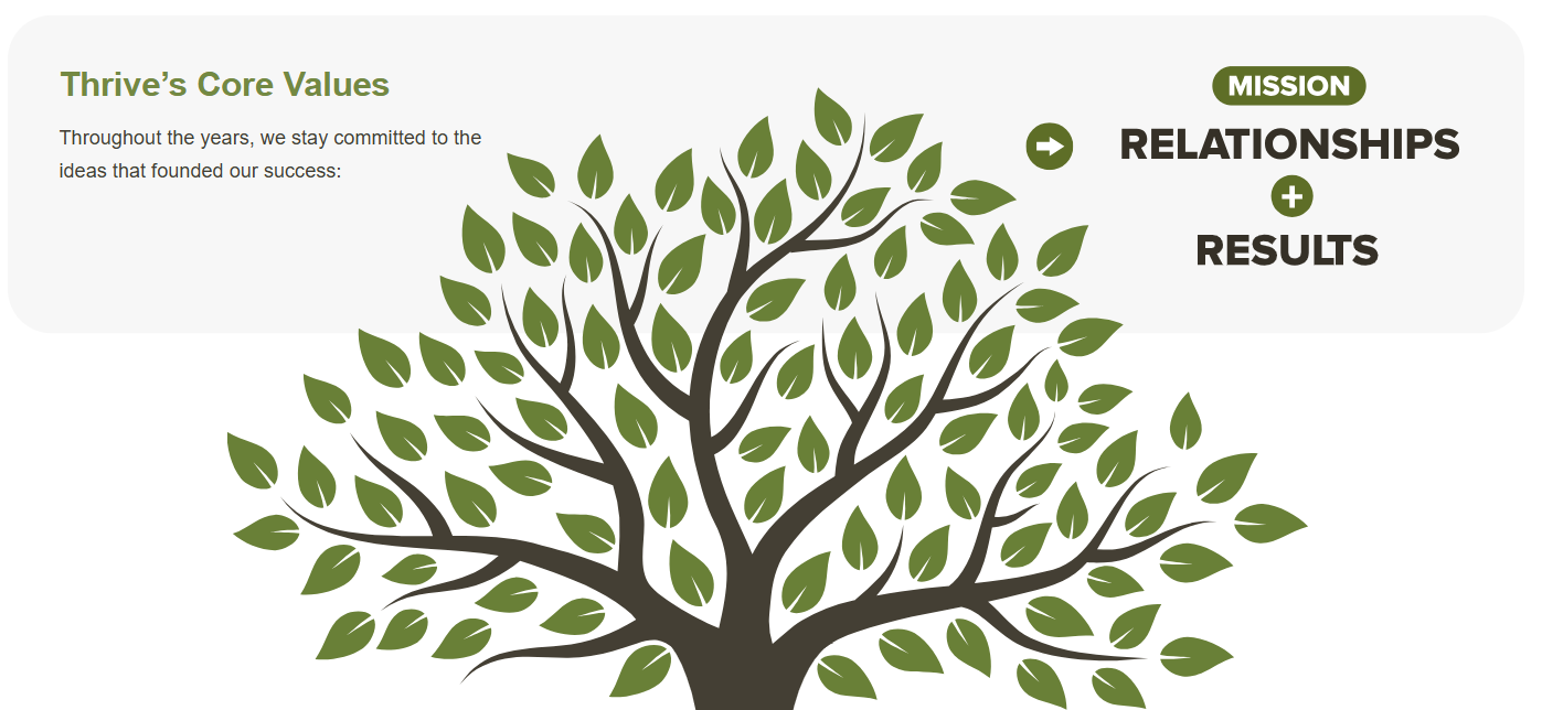Thrive’s success is deeply rooted in its culture and values. We maintain a strong company