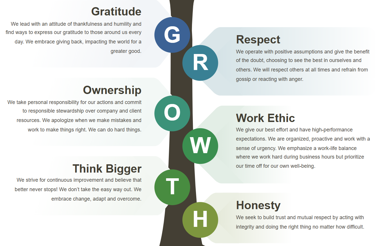 culture built on our core values to ensure our clients and employees are satisfied with their growth.